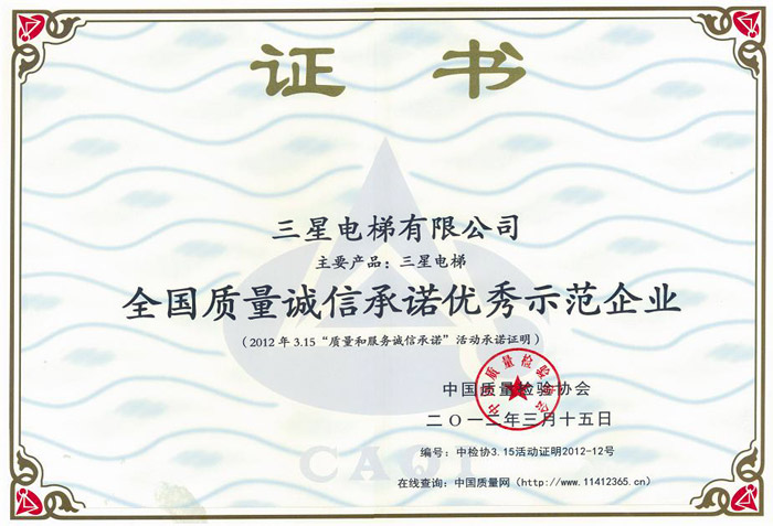 全国质量诚信承诺优秀示范企业