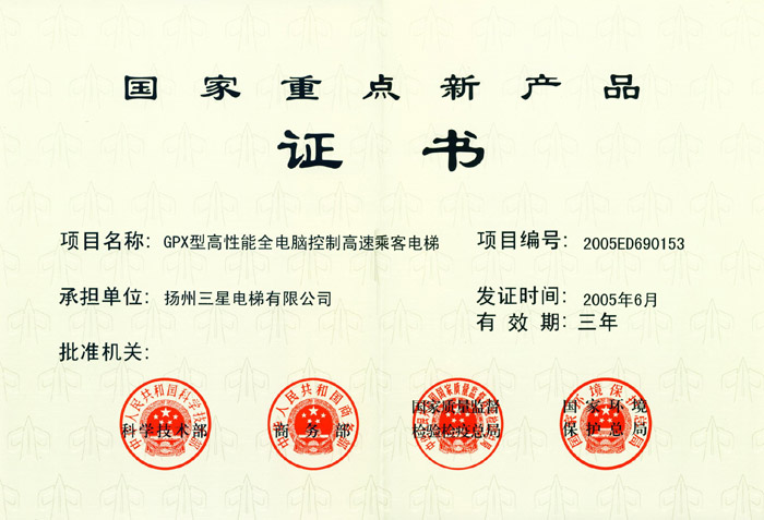 国家重点新产品证书