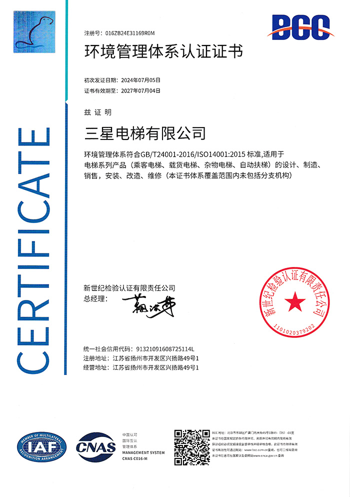 环境管理体系认证证书