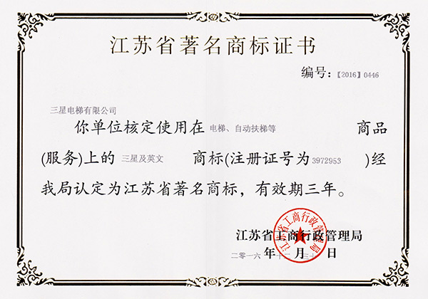 江苏著名商标证书