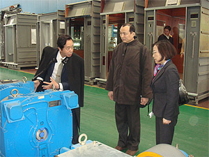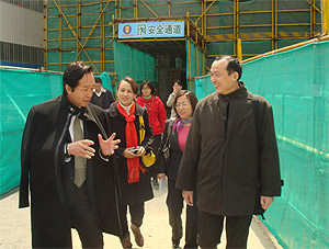 民进省委副秘书长、参政议政处处长云建等领导于2009年4月2日参观168官方开奖官网直播。图为参观生产现场和正在建设的研发中心大楼工地。