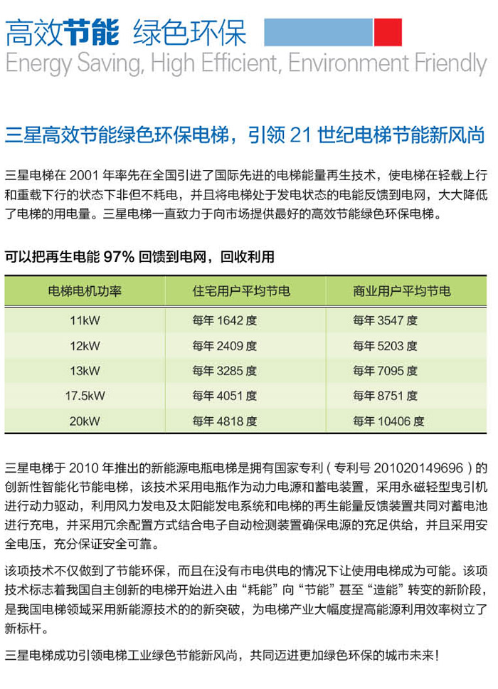 三星高效节能绿色环保电梯,引领21世纪电梯节能新风尚