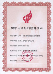 国家火炬计划项目证书